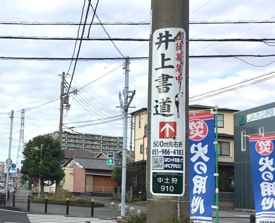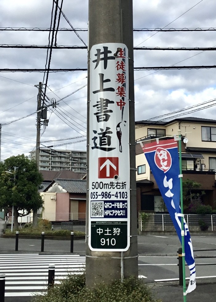 静岡県駿東郡にあります「井上書道院」様の電柱広告を制作させていただきました。
