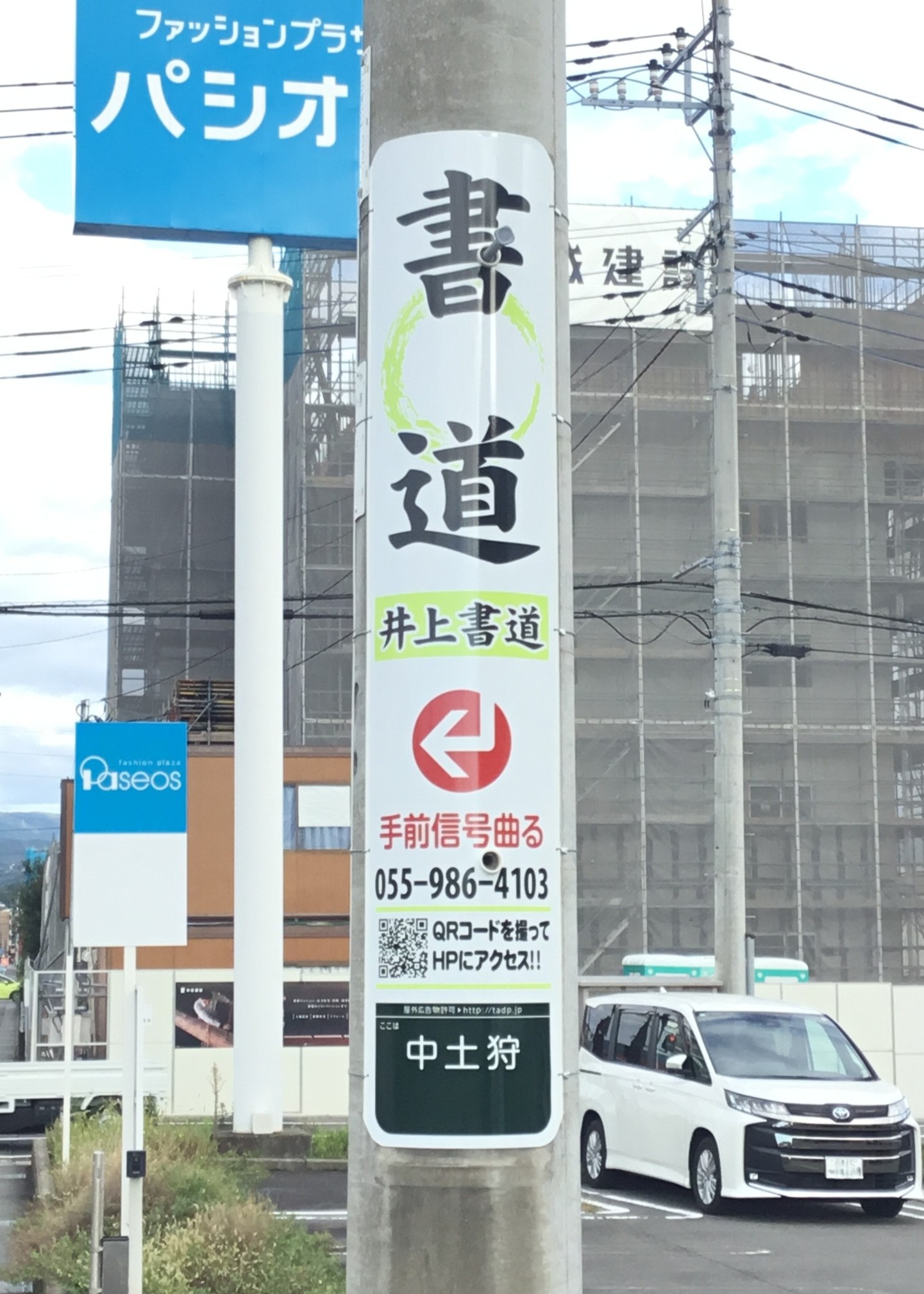静岡県駿東郡にあります「井上書道院」様の電柱広告を制作させていただきました。