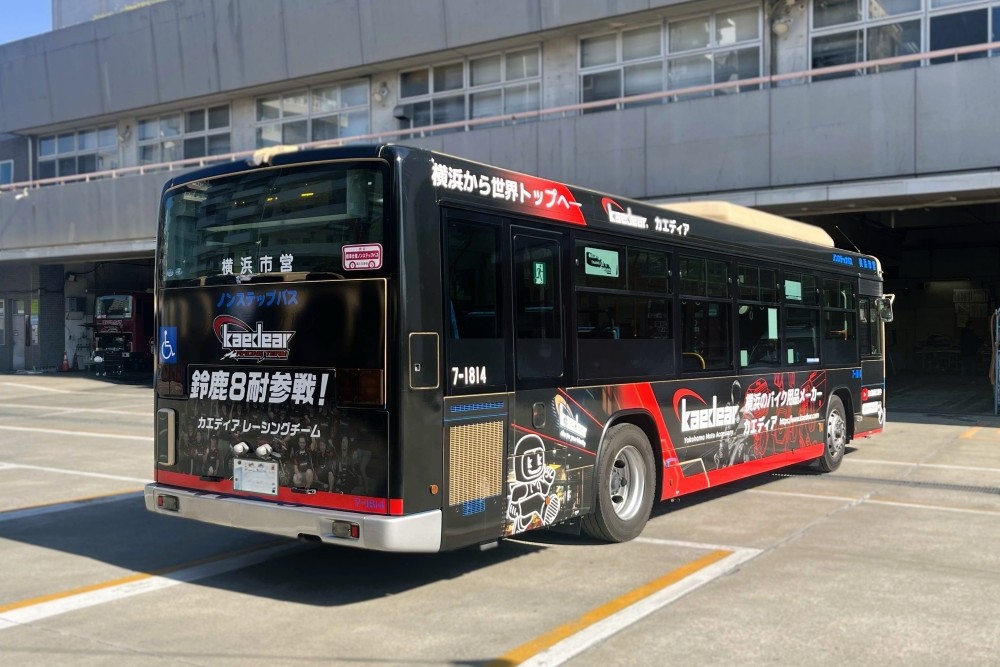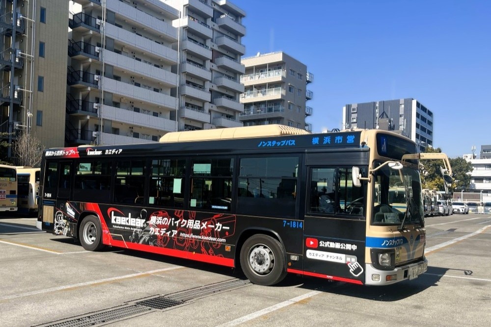 バイク用品メーカー・レーシングチームのPRとして、ラッピングバスをご掲出いただきました。