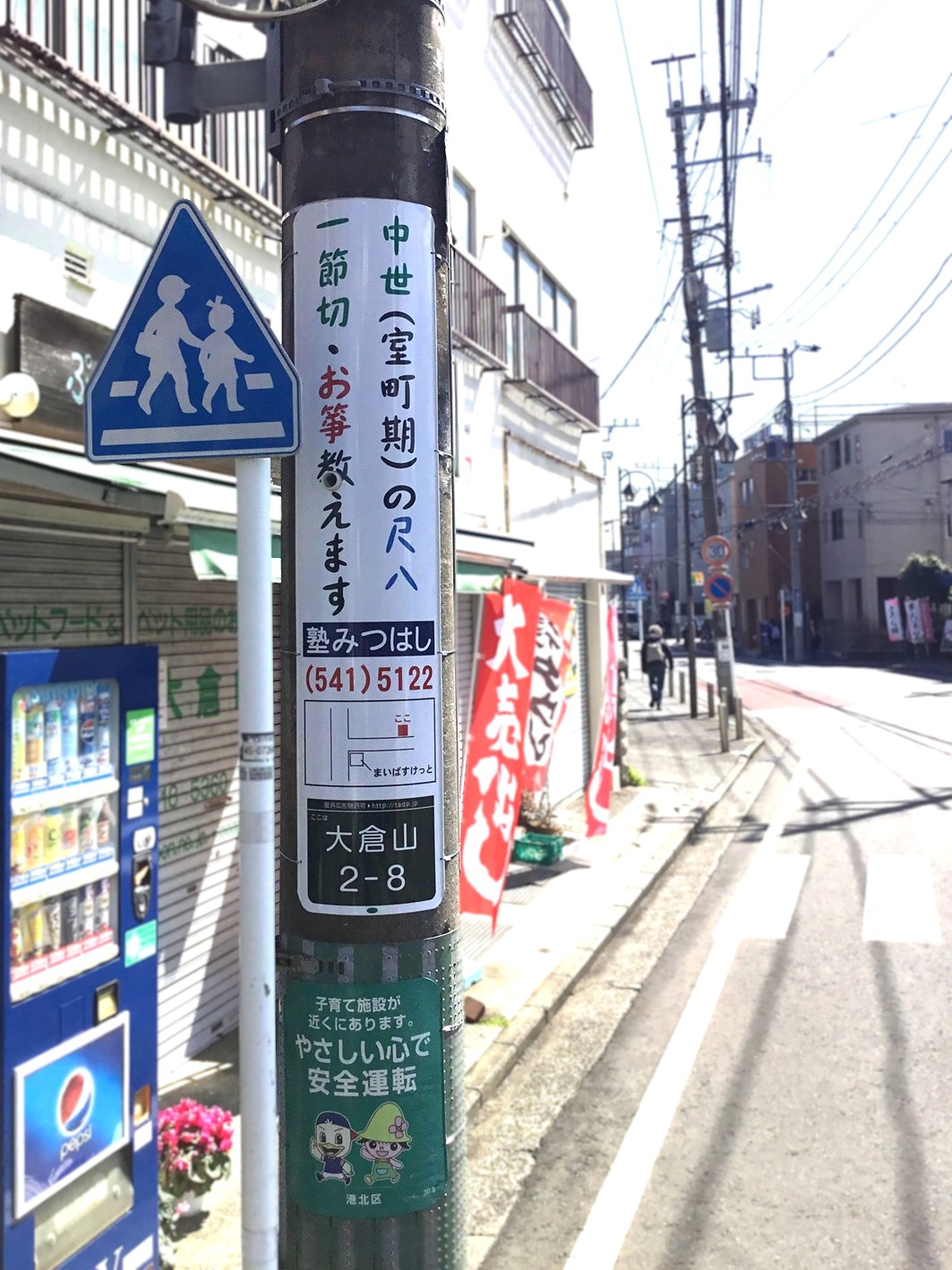最近ではめずらしくなった尺八とお琴を教えている「塾みつはし」様の電柱広告です。